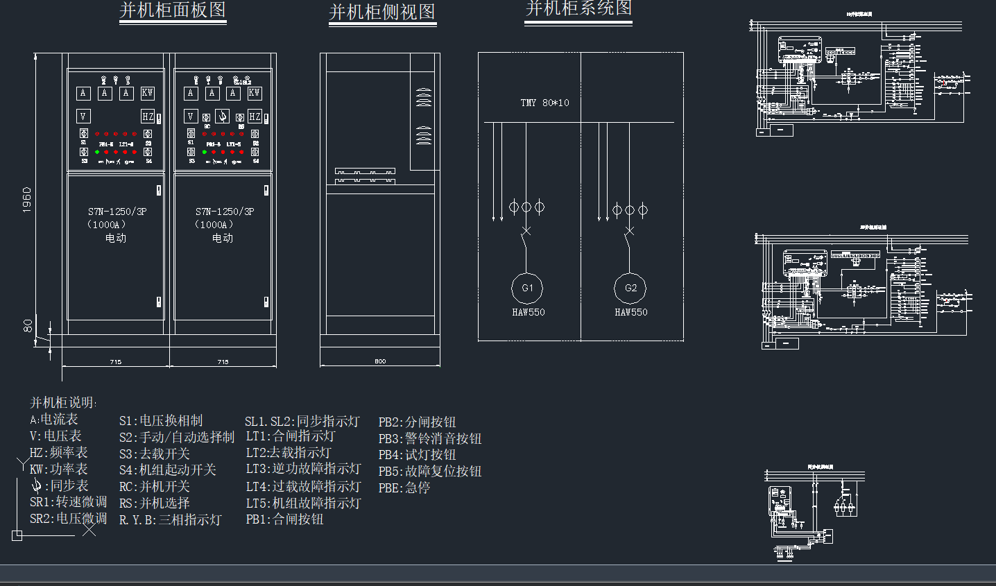 发电机并机柜一二次线路图CAD图纸